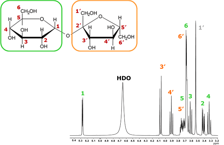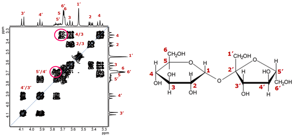 Example of analysis for sucrose using 2D TOCSY