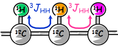 COSY shows correlations between adjacent 1Hs - in other words, 1Hs that are 3 bonds apart. The spin coupling of 3 bonds apart is expressed as 3JHH.If the adjacent 1H is known, the connection of 1Hs in a molecule can be understood.