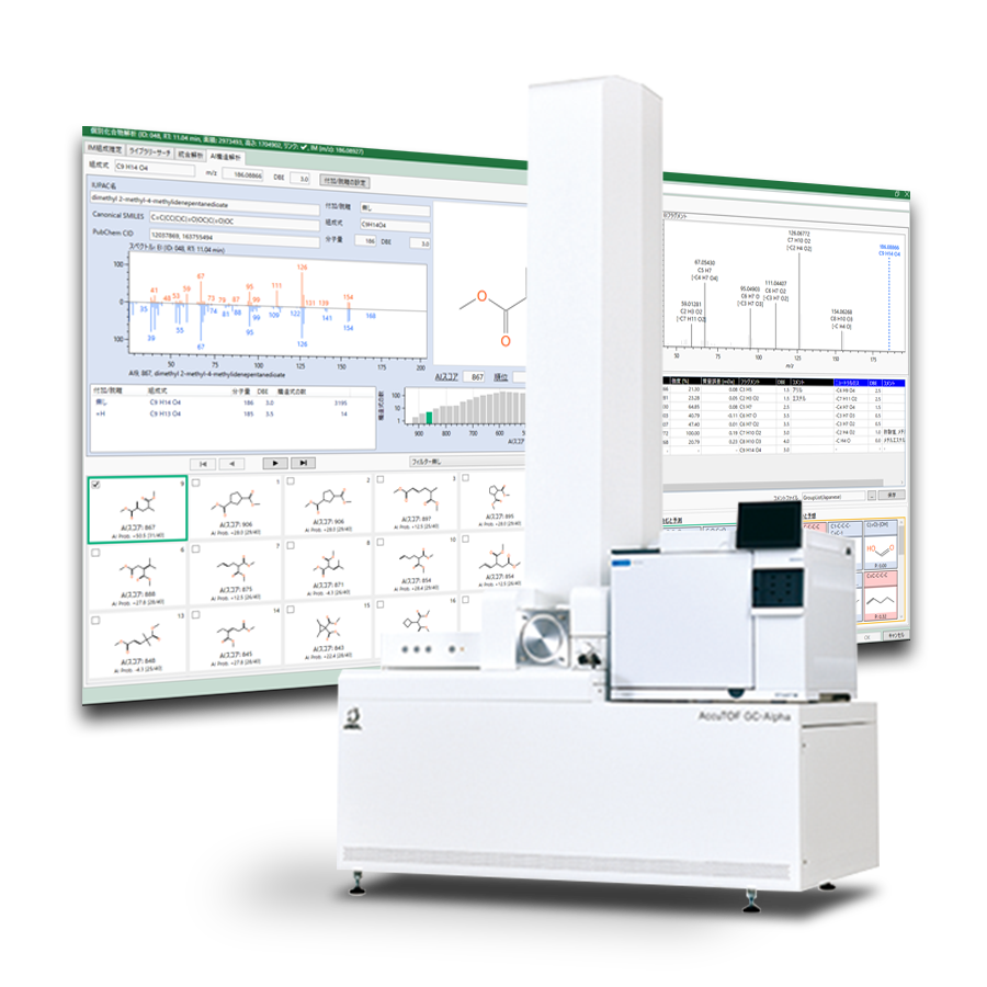 Building on these data, msFineAnalysis AI offers an integrated workflow that combines EI and soft‑ionization spectra, deconvolution, retention‑index prediction, molecular‑formula estimation, and an extensive AI‑generated library of over 200 million predicted EI spectra. This allows users to efficiently narrow down structural candidates and evaluate them with higher confidence, especially in metabolomics, polymer pyrolysis, GC×GC aroma analysis, and other applications involving complex mixtures.