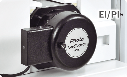PI is an ionization method that uses photons from a vacuum ultraviolet (VUV) lamp for ionization. The AccuTOF™ GC-Alpha has an optionally available combination ion source that offers both EI (hard ionization) and PI (soft ionization). This source makes it possible to switch between EI and PI by simply turning on/off the EI filament as well as the PI lamp.