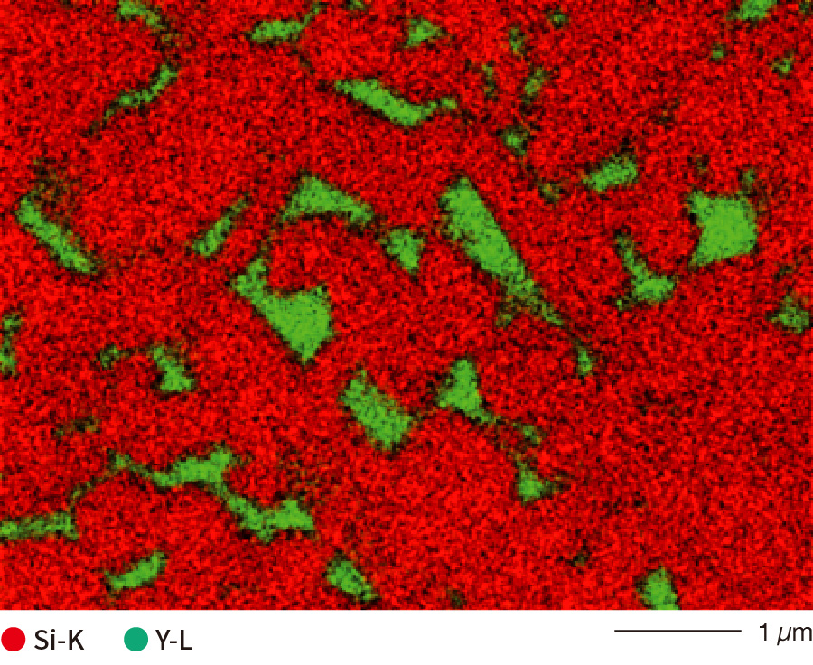 Accelerating voltage: 5 kV, low-vacuum elemental mapping (30 Pa), Machine milled surface of Si3N4 substrate*