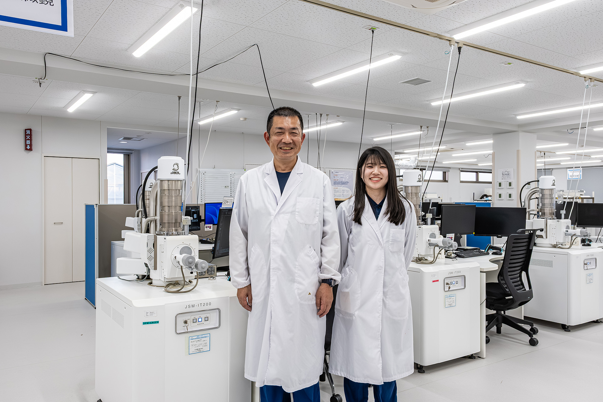 15 units of scanning electron microscope(SEM)s are lined up on a single floor. Even our JEOL employees would cry at a glance saying "a scene that I have never seen". Eurofins Nihon Soken K.K. (Hamamatsu City, Shizuoka Prefecture) provides services of environment testing, measuring, and analysis and is ranked at the top of asbestos analysis industry. The 15 units of SEMs are playing a part of the analysis line.