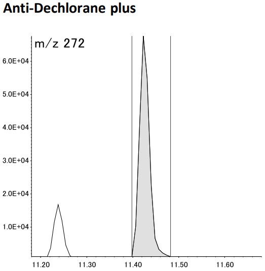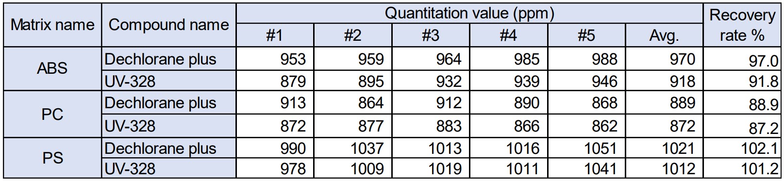 Dechlorane Plus (DP) is widely used to Electronics and Textile products as Chlorinated flame retardants and UV-328 is widely used to Paint and Plastic products as UV absorber. However, these two compounds became regulation target of Persistent Organic Pollutants treaty (POPs) in 2023 due to concerns that their flame resistance, high concentration and long-term toxicity will have a bad influence on the human body. As a screening analysis for judgment of containing/not containing on the same kind regulation target, there is an analysis method of phthalate esters by PY-GC/MS in the IEC62321-8. This method allows direct analysis without sample pretreatment. This study tried to analyze of DP and UV-328 by PY (PY-3030D, FRONTIER LAB)-GC/MS method using the JMS-Q1600GC UltraQuad™ SQ-Zeta. As the result, good reproducibility and detection sensitivity were obtained and It seemed to quite possible to screening analysis.