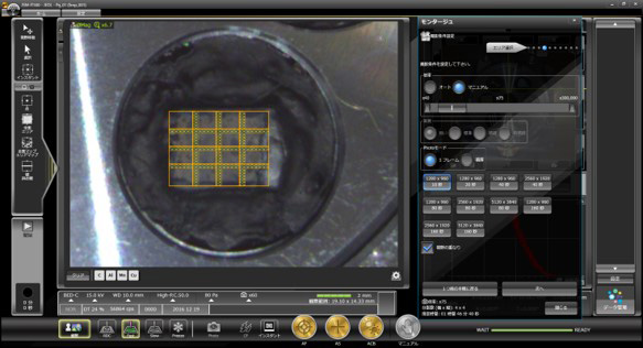 This function obtains an SEM image of the designated area when you are away for meetings and at night. If you specify the fibers searched and found in the SEM image, analysis/classification is possible by returning to the fiber.